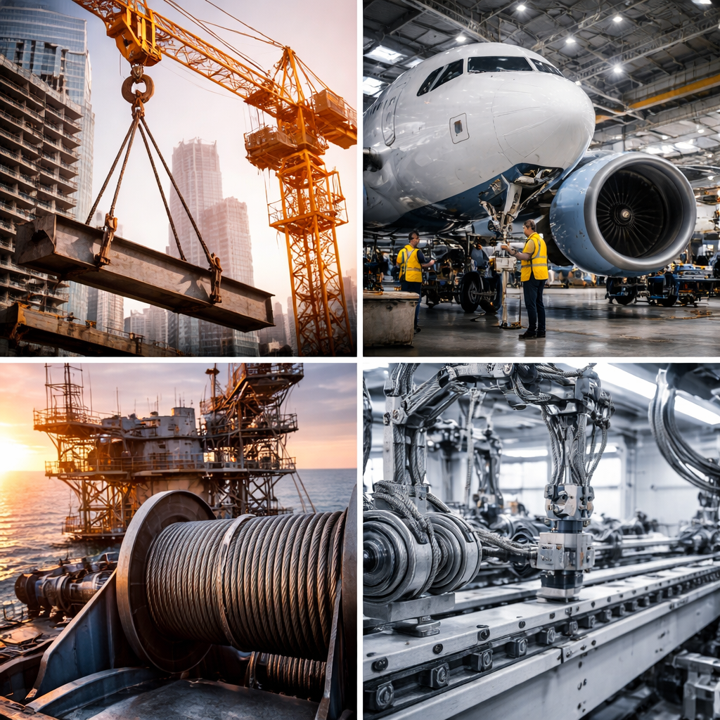Supporting industries from lifting and rigging to aerospace and mechanical systems.Projects delivered worldwide, providing reliable wire rope solutions for diverse industrial applications.